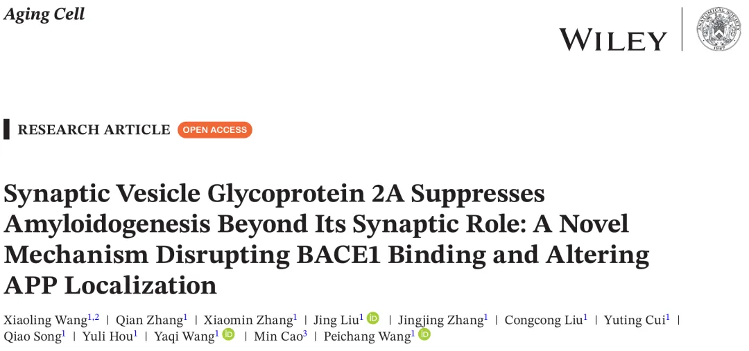 由首都醫(yī)科大學(xué)宣武醫(yī)院的王培昌教授團(tuán)隊(duì)在《Aging Cell》上發(fā)表的研究揭示了SV2A通過下調(diào)APP的淀粉樣蛋白降解,抑制AD的病理進(jìn)展。